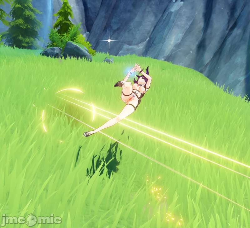 Fulfilling a Patron request today between Furina mods, here's one where Yelan has Lynette's nude harness outfit, but without the extra gloves/boots/pauldrons. I took a bit of time to customize the cat logo too, turning it into a bunny logo - pretty happy with that touch! ;)