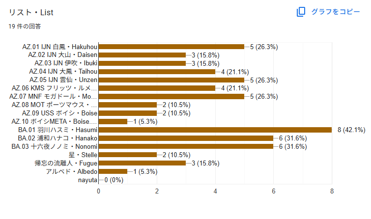 以上です。投票に参加してくださった19名の皆さま、ありがとうございました。
