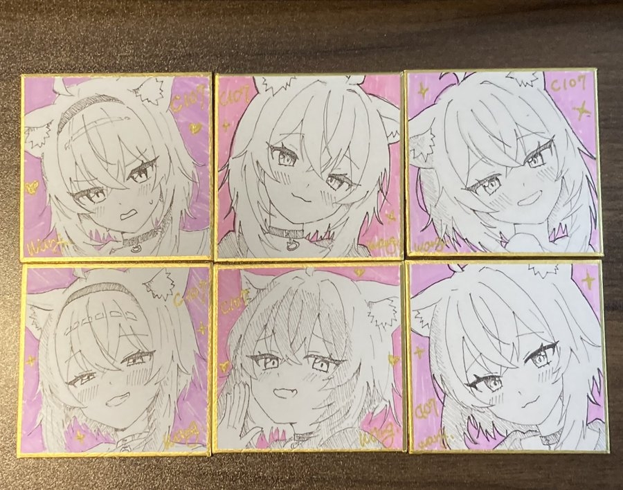 こっちは手描き色紙(中サイズ)3枚▼