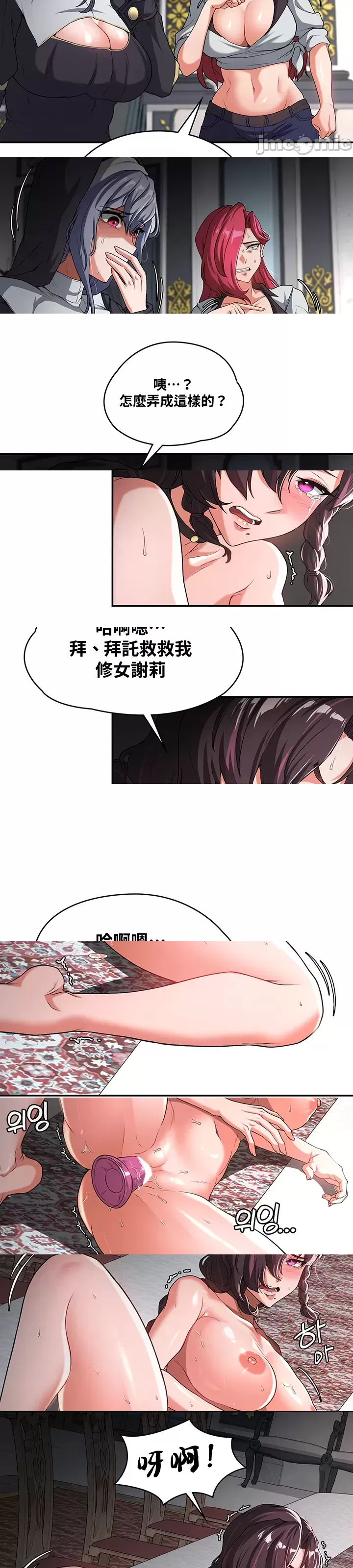 勇者褲襠瞬間撐成小帳篷,更捉起少女發抖的雙手摸索燙熱巨根,摸得少女瑟瑟發抖惹人欺負!