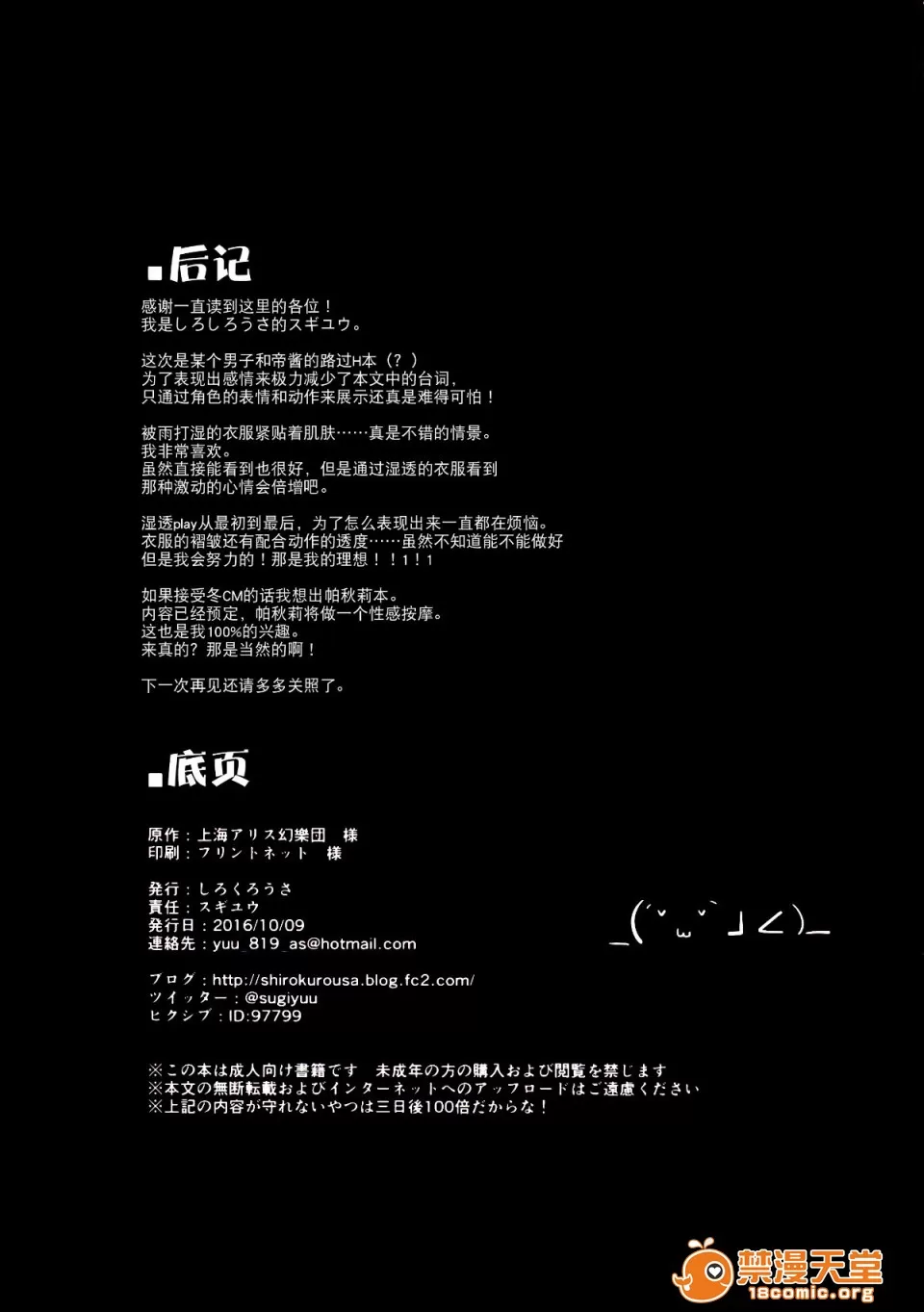 【Kanade汉化组】(紅楼夢12)[しろくろうさ (スギユウ)]濡れ透けてゐちゃんと通り雨の情事(和湿透了的帝酱在一起梅雨天的情事) (東方Project)|H漫內頁瀏覽 Comics - 禁漫天堂