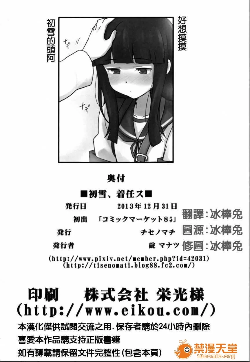 (C85) [チセノマチ (碇マナツ)] 初雪、著任ス (艦隊これくしょん -艦これ-) [冰棒兔個人漢化] |
