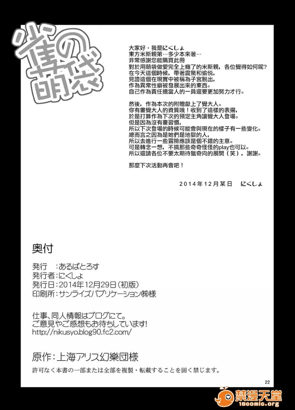 [靴下漢化組] (C87) [あるばとろす (にくしょ)] 雀の萌袋 (東方Project)|H漫內頁瀏覽 Comics - 禁漫天堂